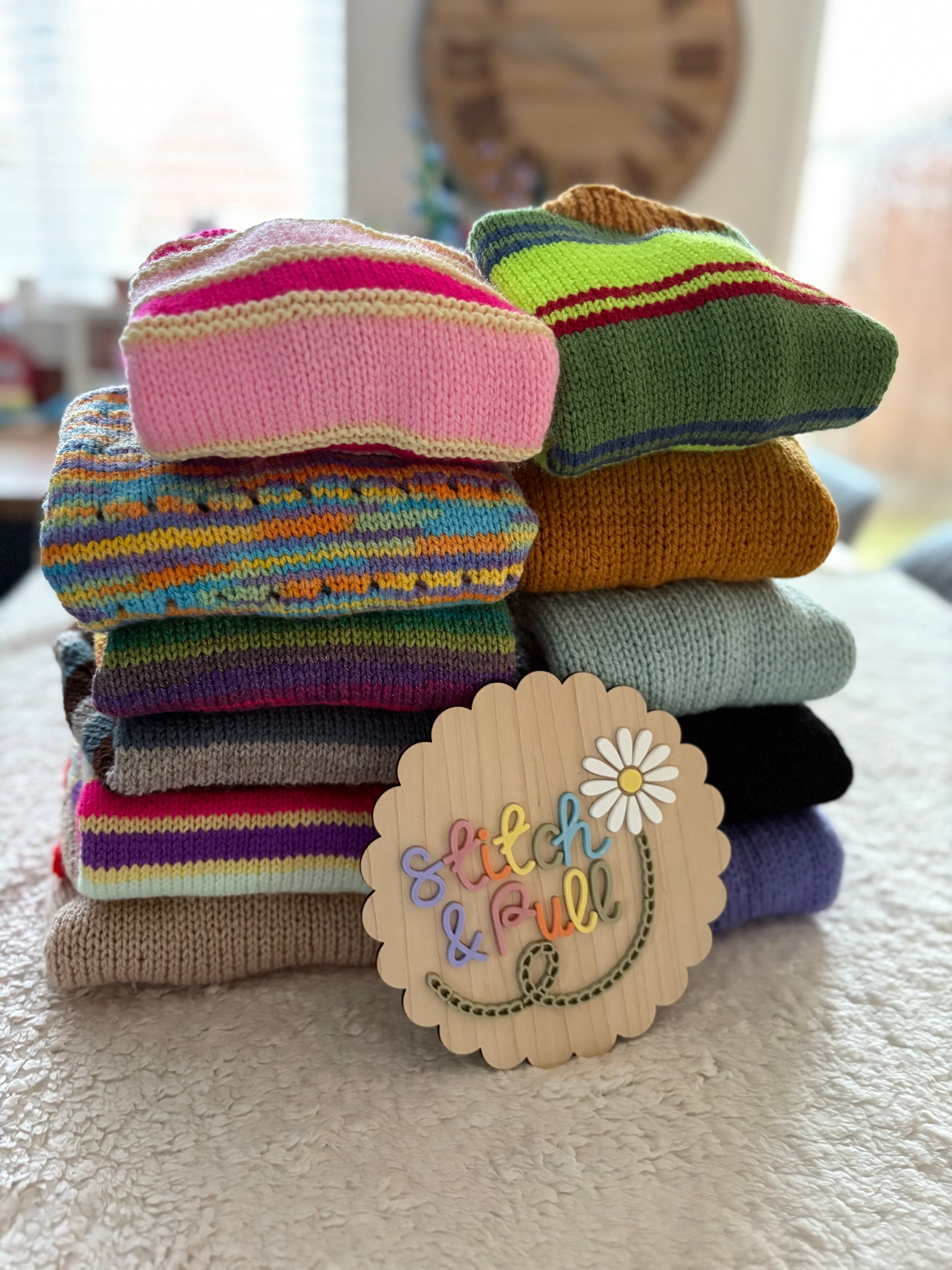 This is a hand embroidered cardigan, hat or stocking personalised with your child’s name. Please see the pictures for the knits available.