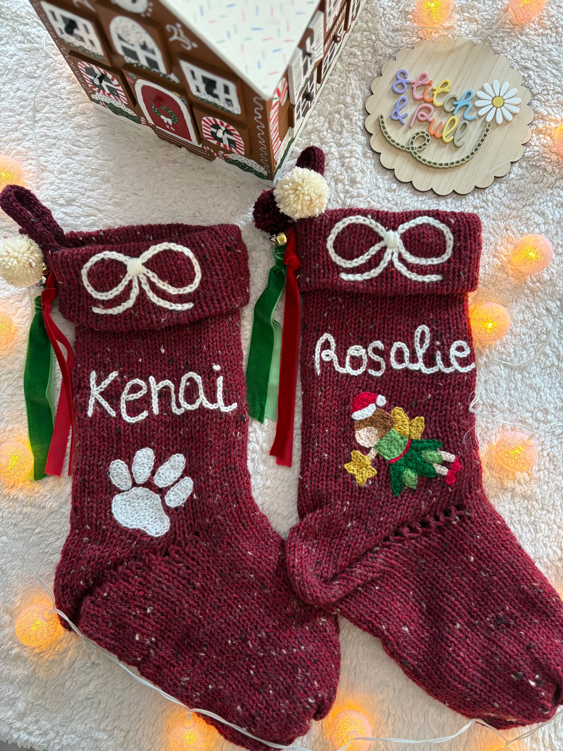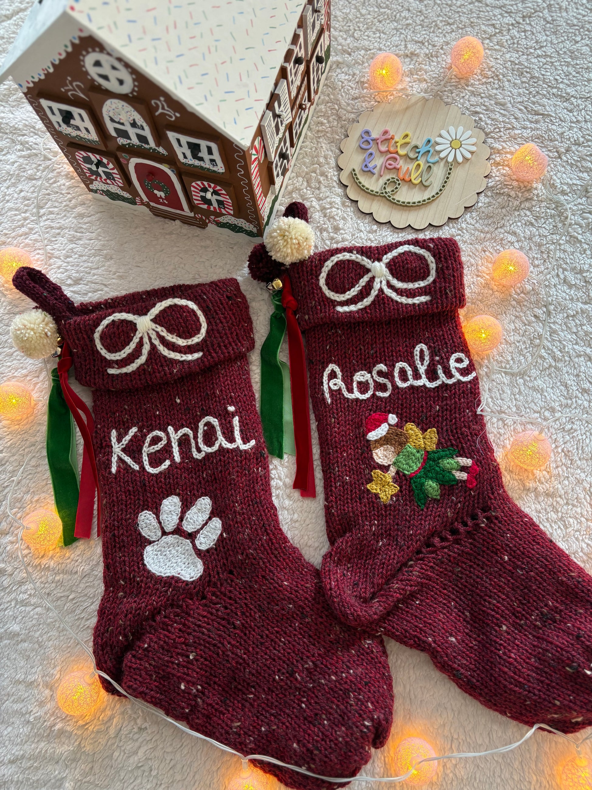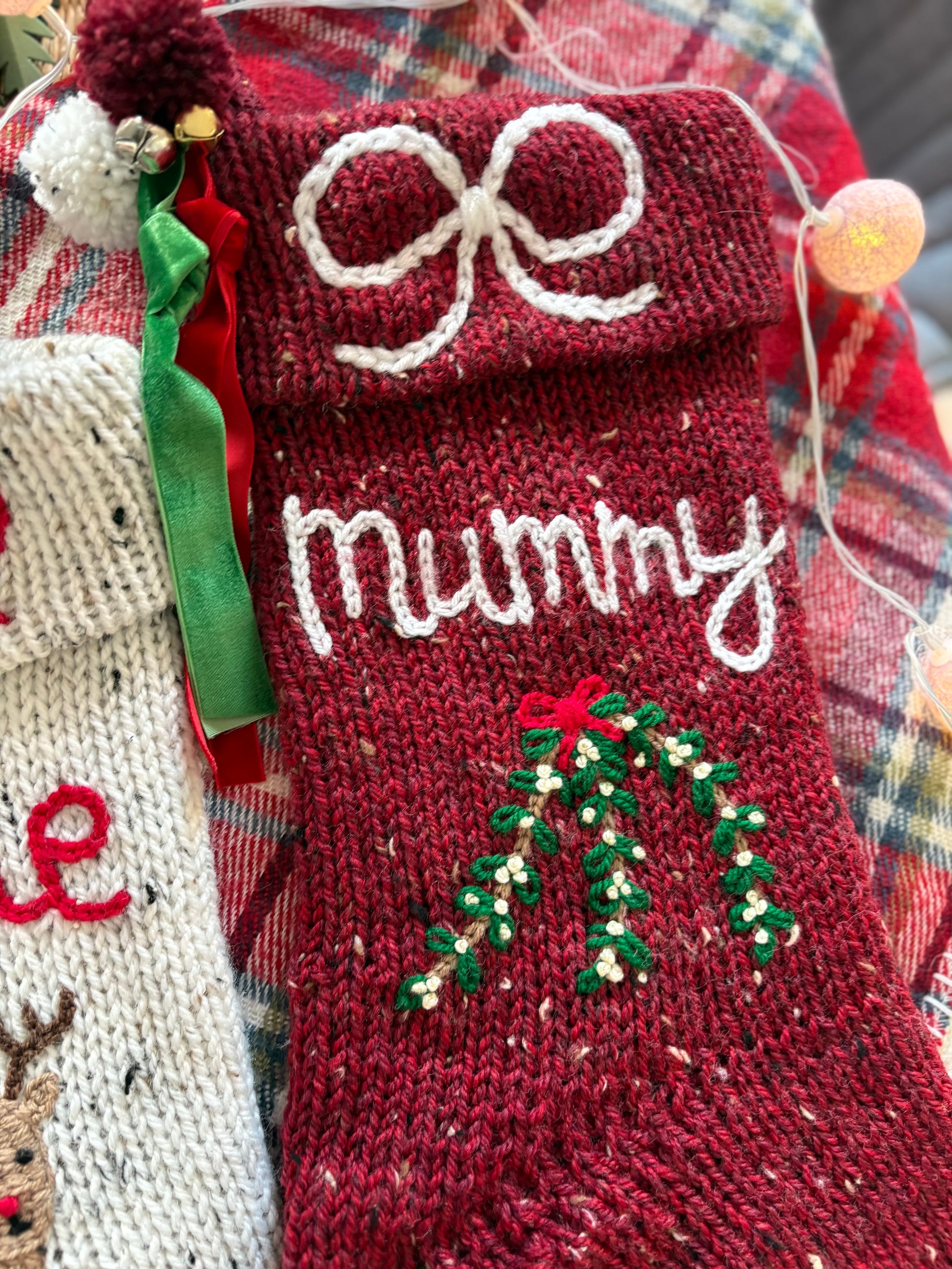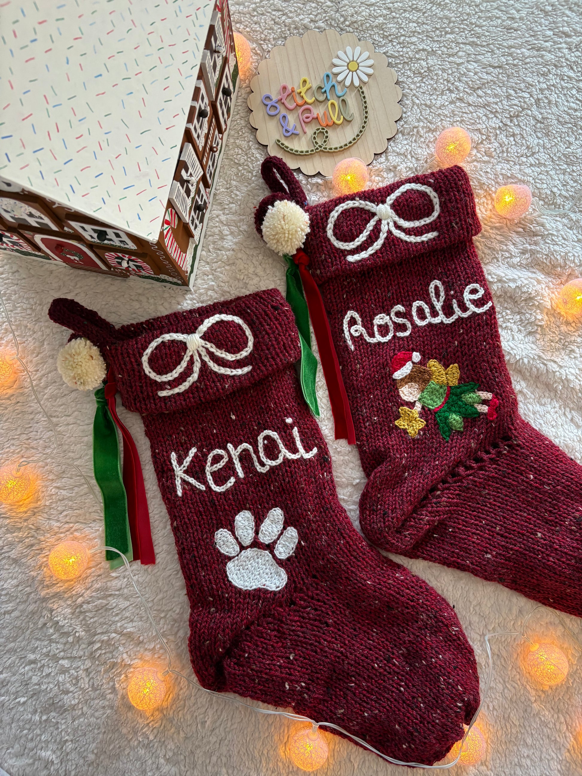 The stockings are available in red, green, blue, or white, measuring 47 cm in length and 16 cm in width (with a bit of stretch!) – perfect for filling with Christmas treats and surprises. Each one is fully double-layered, so you don’t need to worry about embroidery snagging on gifts inside.