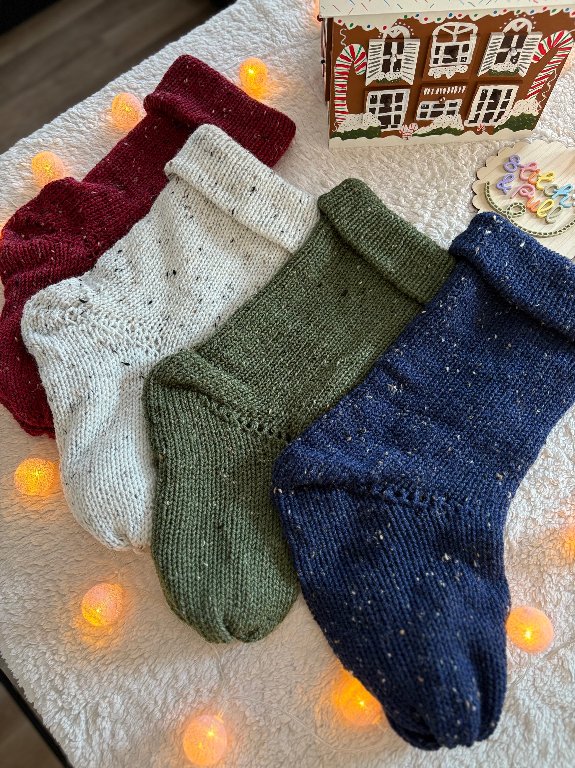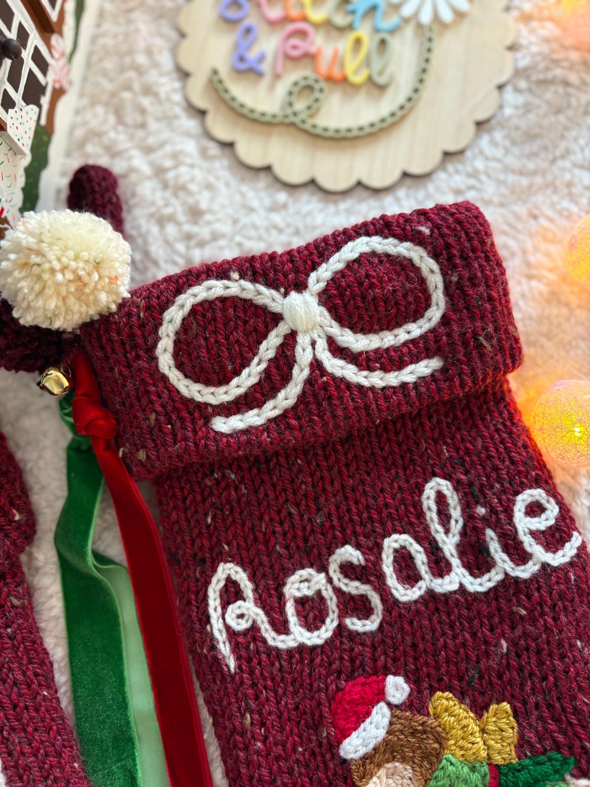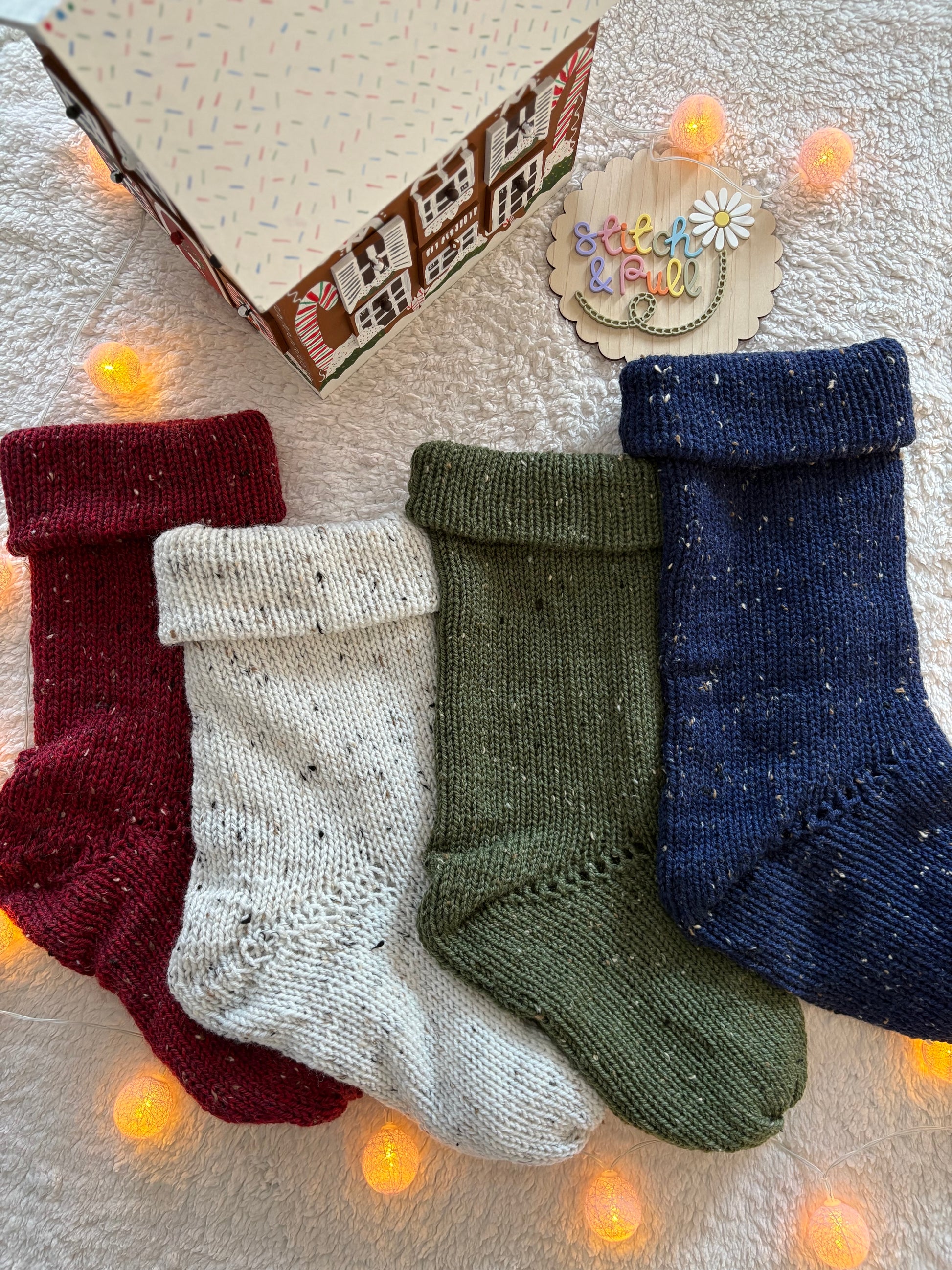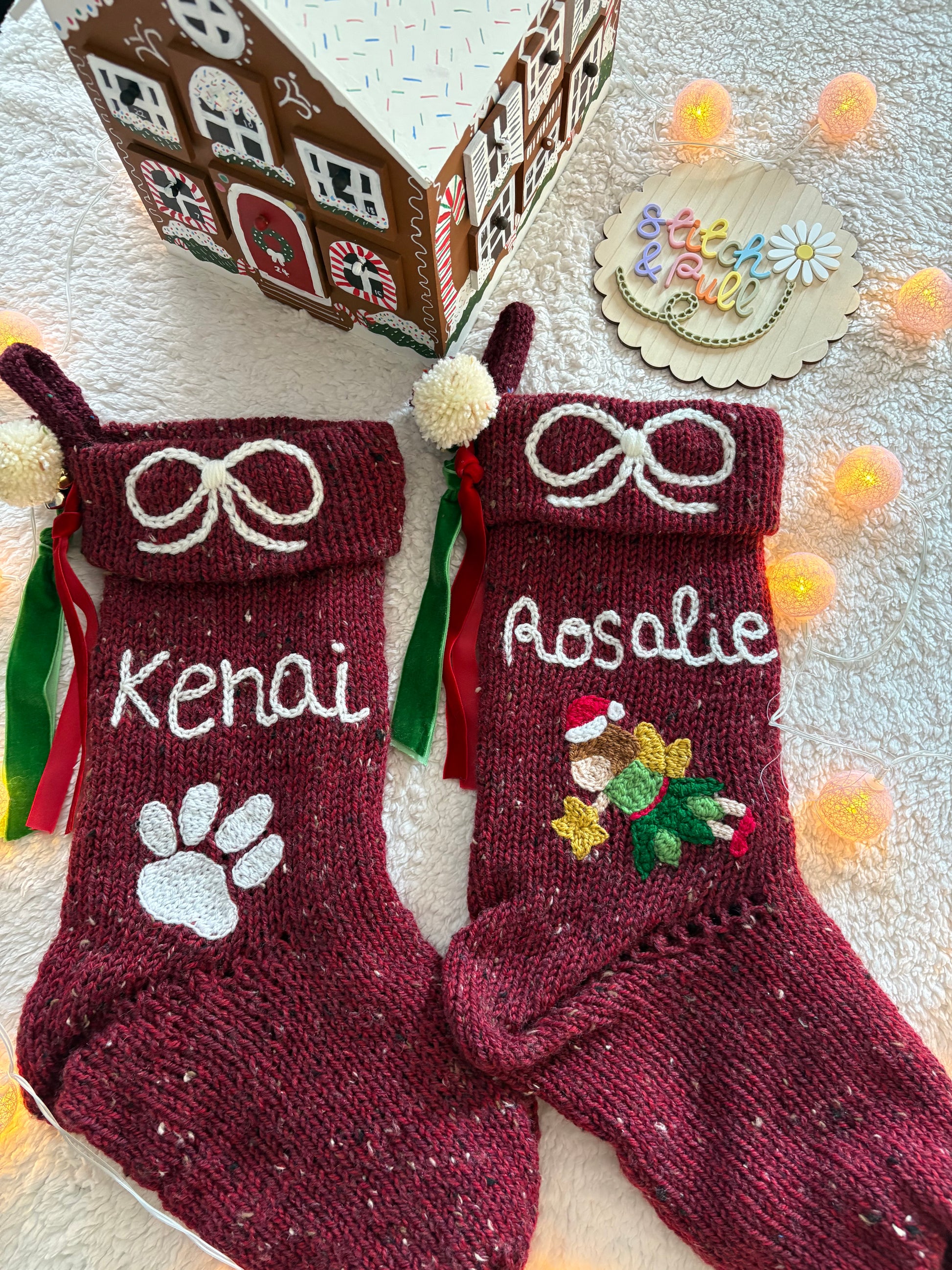 The stockings are available in red, green, blue, or white, measuring 47 cm in length and 16 cm in width (with a bit of stretch!) – perfect for filling with Christmas treats and surprises. Each one is fully double-layered, so you don’t need to worry about embroidery snagging on gifts inside.